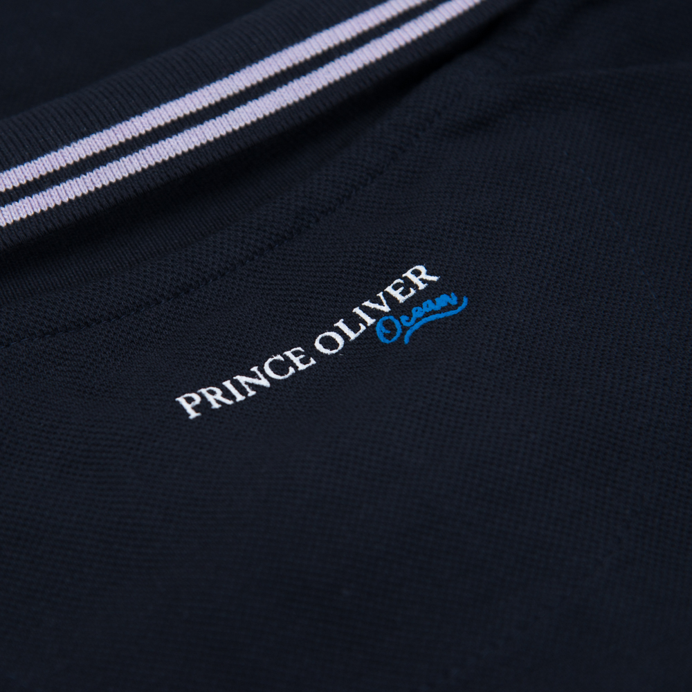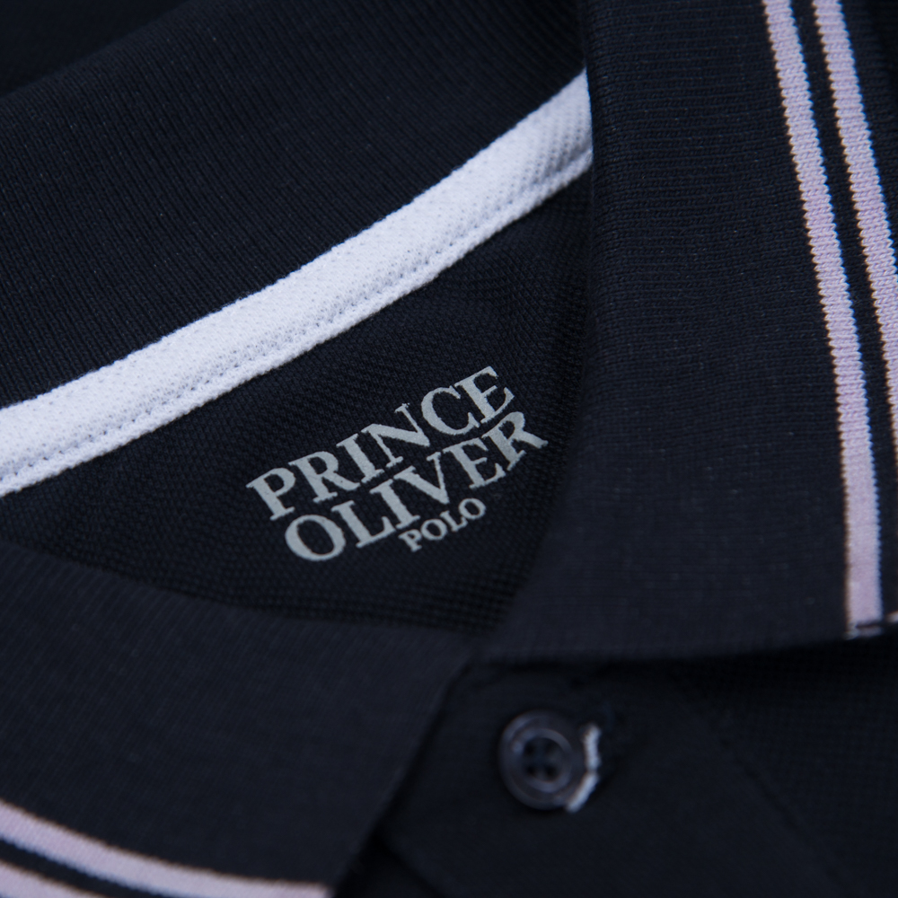 Prince Oliver Ocean Pique Polo Μπλε Σκούρο με Stripe Details in Cotton Modern fit