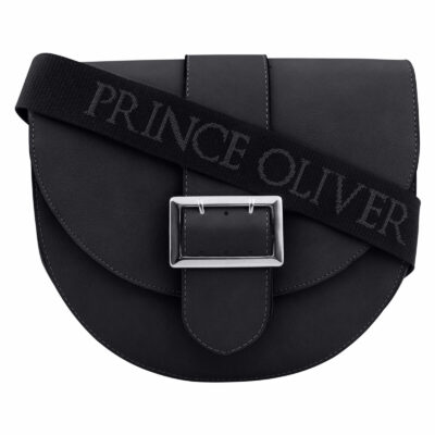 Prince Oliver Γυναικεία Τσάντα Saddle Bag Χιαστί Μαύρη Eco Leather