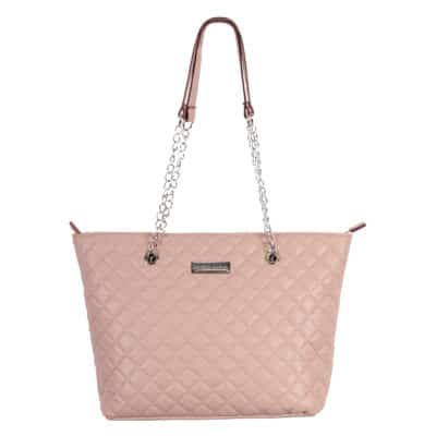 Prince Oliver Γυναικεία Τσάντα Ώμου Shopper Bag Capitone Μπεζ Nude Eco Leather