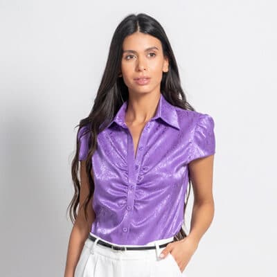 Γυναικείο Πουκάμισo Μεταλιζέ Μπροκάρ Μωβ