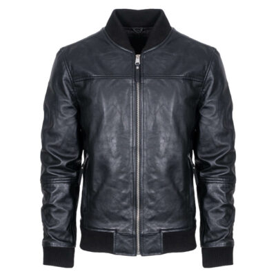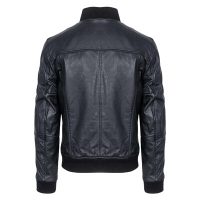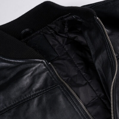 Bomber Jacket Μαύρο in Sheep Nappa Leather Modern Fit