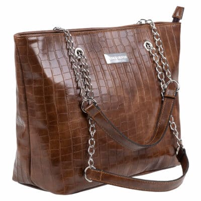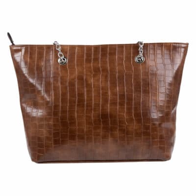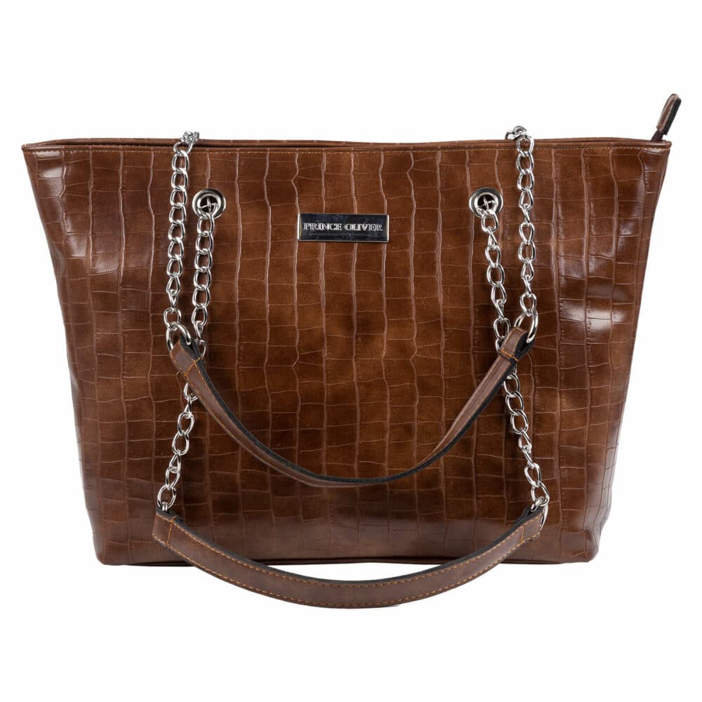 Prince Oliver Γυναικεία Τσάντα Ώμου Shopper Bag Κροκο Καφέ Eco Leather