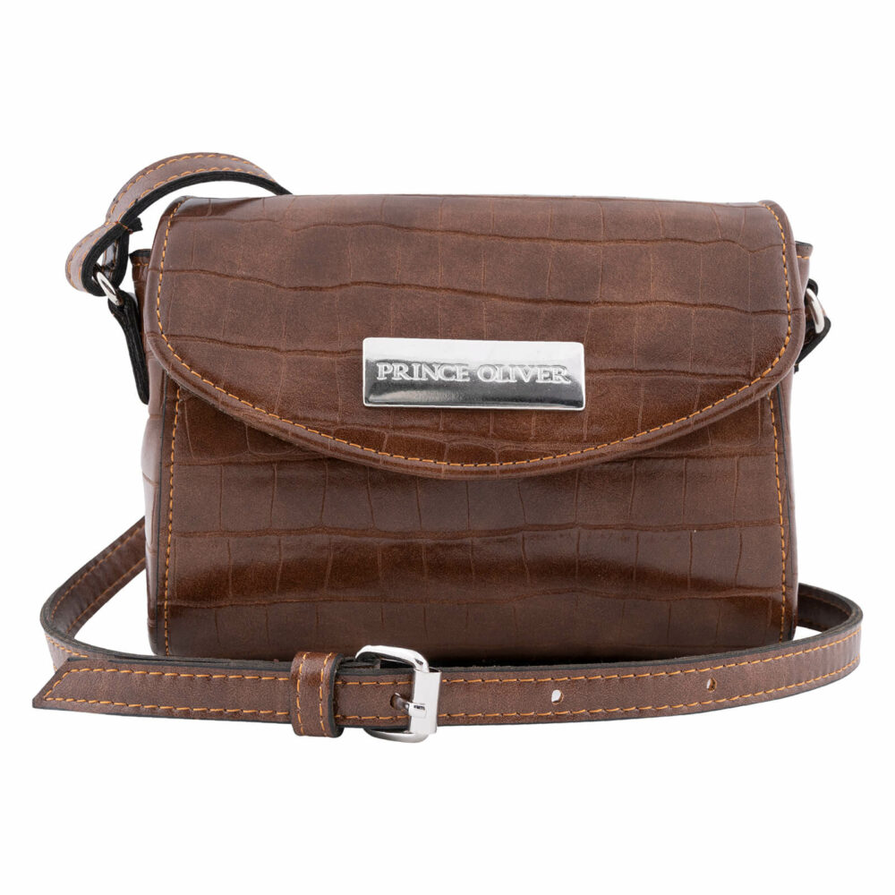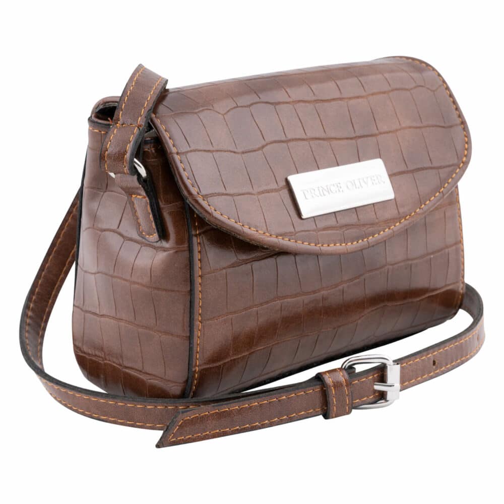 Prince Oliver Γυναικείο Τσαντάκι Κροκό Καφέ Eco Leather