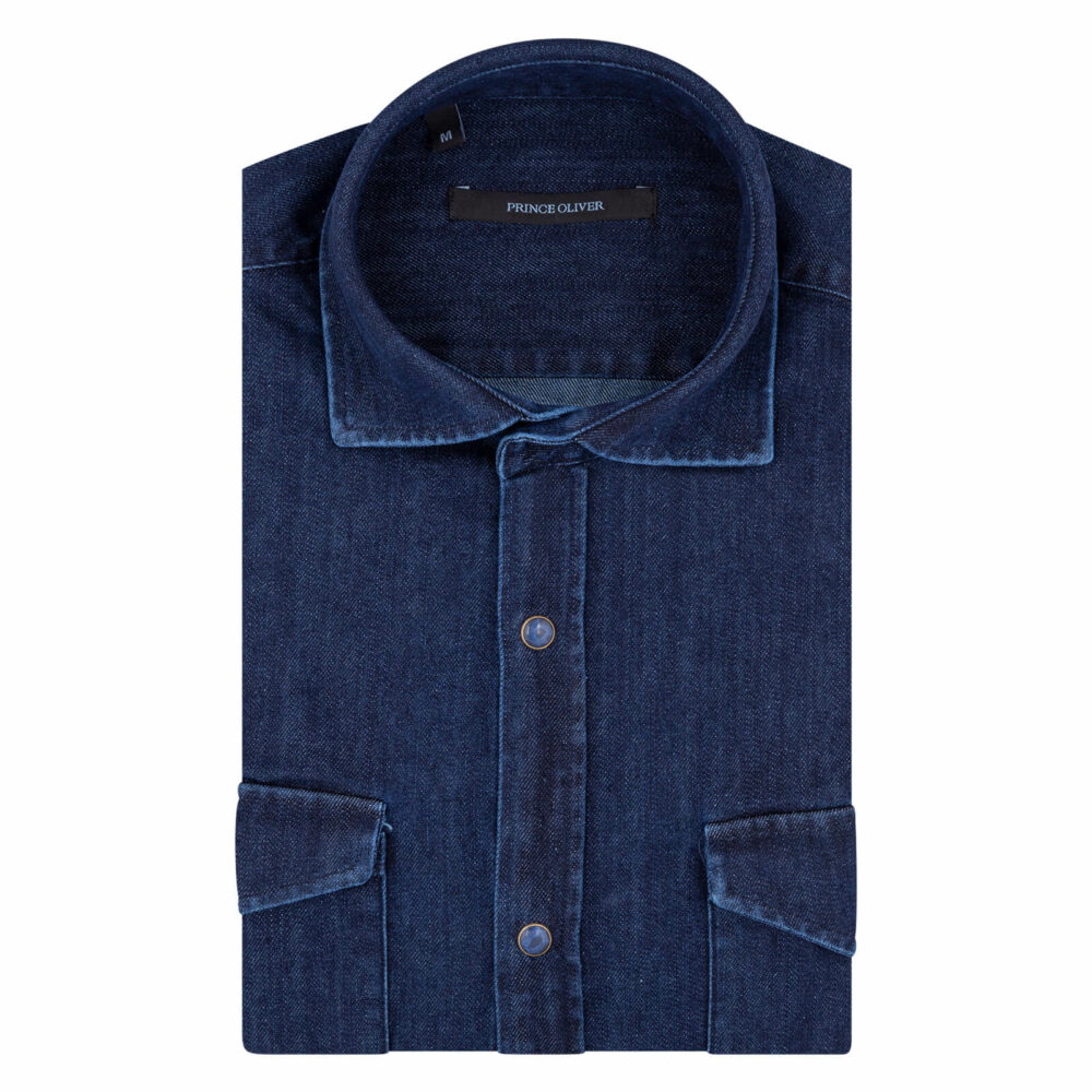 Prince Oliver Πουκάμισο Τζιν Μπλε 100% Cotton (Modern Fit)