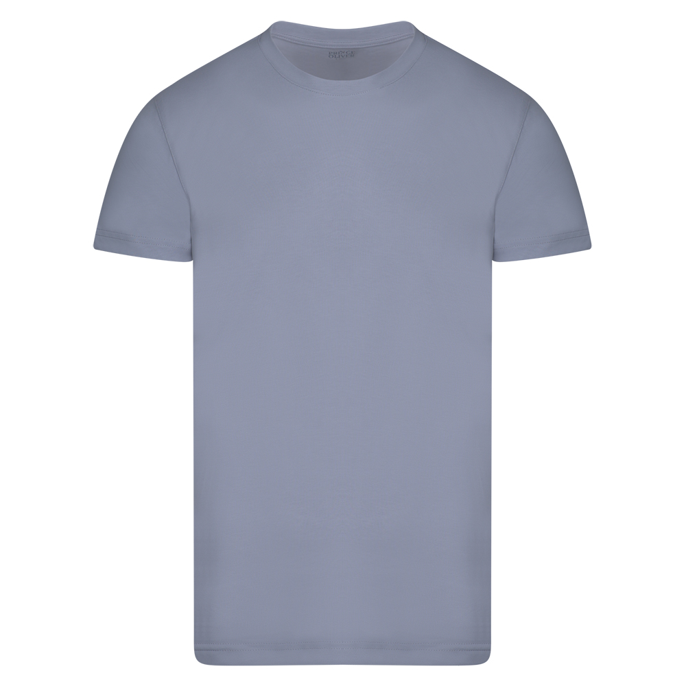 Crew Neck T-shirt Grey Light Cotton Stretch with Logo on Back Modern Fit