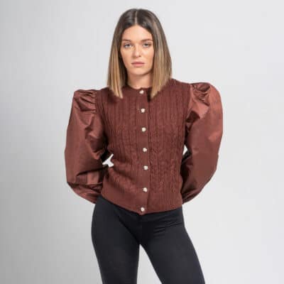 Women’s bordeaux knitted cardigan with bishop sleeves