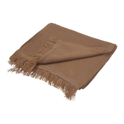 Beige Scarf with Structured Knit and Fringes