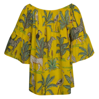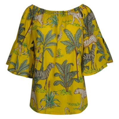 Women’s Gypsy Blouse Tropical Print Yellow LAST PIECES