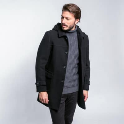 Elegant Montgomery Black with Hood (Modern Fit)