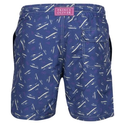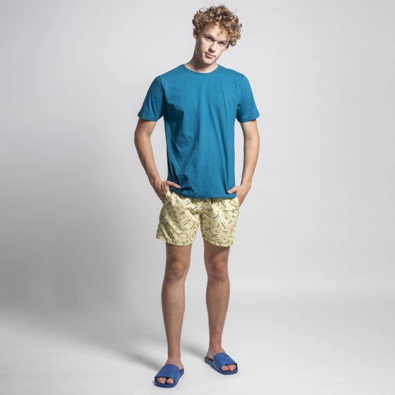 To stand out in your beach appearances, choose a swimsuit with marine motifs, Mediterranean and Hawaiian influences. At the right length, it dries very quickly and fits perfectly with colored polo shirt, jockey hat and espadrilles or white sneakers.