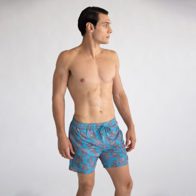 To stand out in your seaside looks and attract attention, choose a swimsuit with sea patterns, Mediterranean and Hawaiian influences. At the right length, it dries very quickly and goes perfectly with a colored polo shirt, jockey hat and espadrilles or white sneakers.