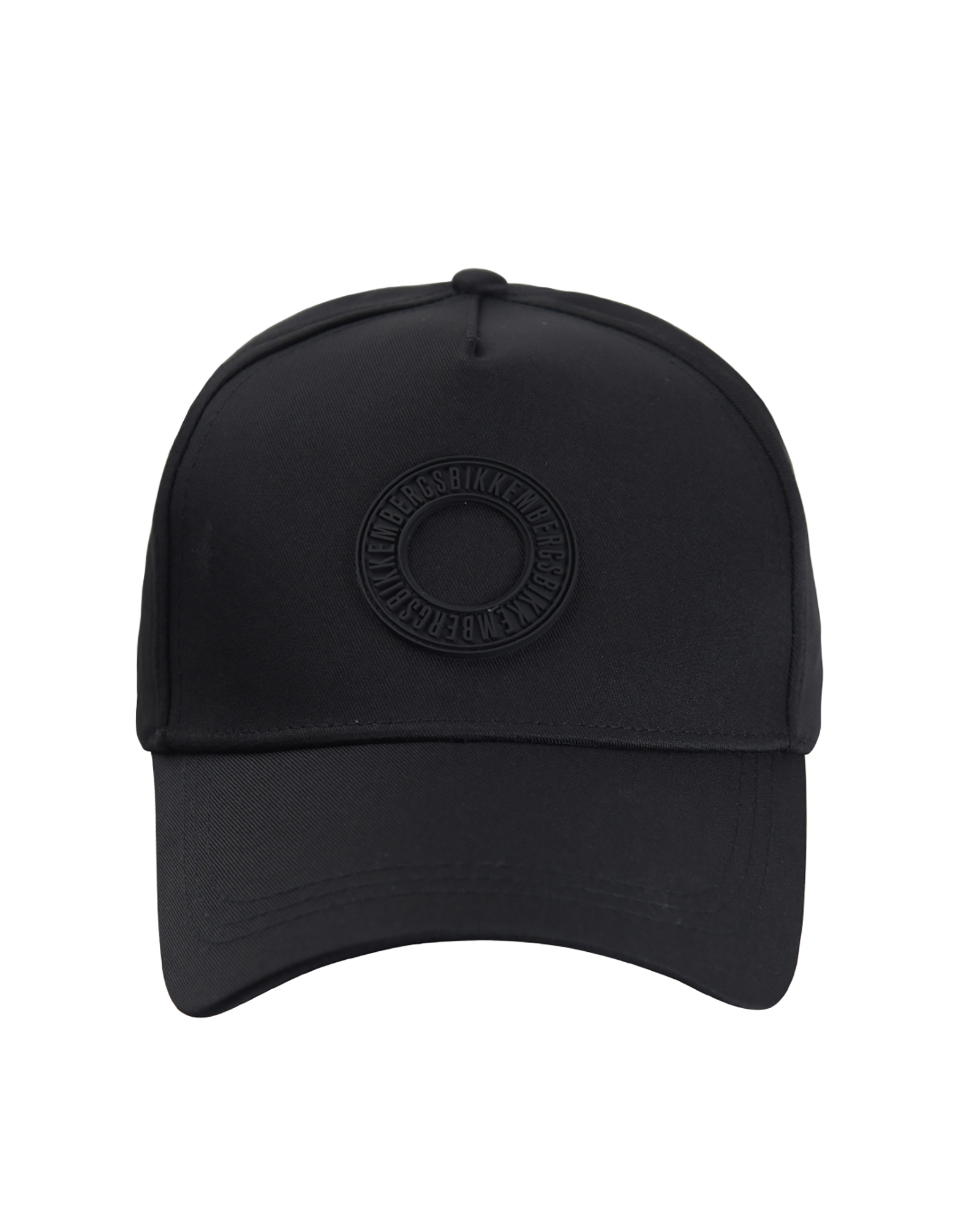 Jockey hat from the Bikkembergs collection, designed with inspiration from sporty style and urban aesthetics. It features a minimal design with a dominant element of an embossed circular logo on the front.