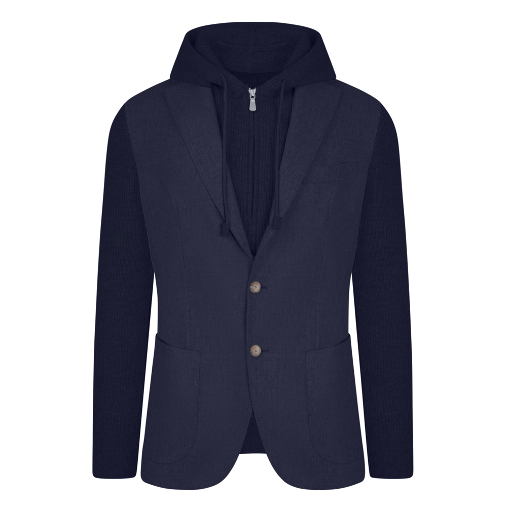 Upgrade your smart-casual style with this premium Hybrid Blazer. The sleek design of a classic blazer is combined with the comfort of a knitted hooded inner lining, creating a modern and highly practical layering piece.