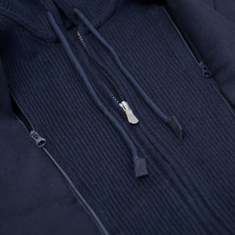 Hybrid Jacket Blue with Knitted Inner Lining & Hood in Wool