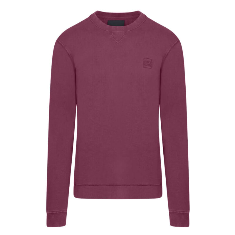 Burgundy Round Neck Sweatshirt in Cotton with Knitted Logo (Modern Fit)