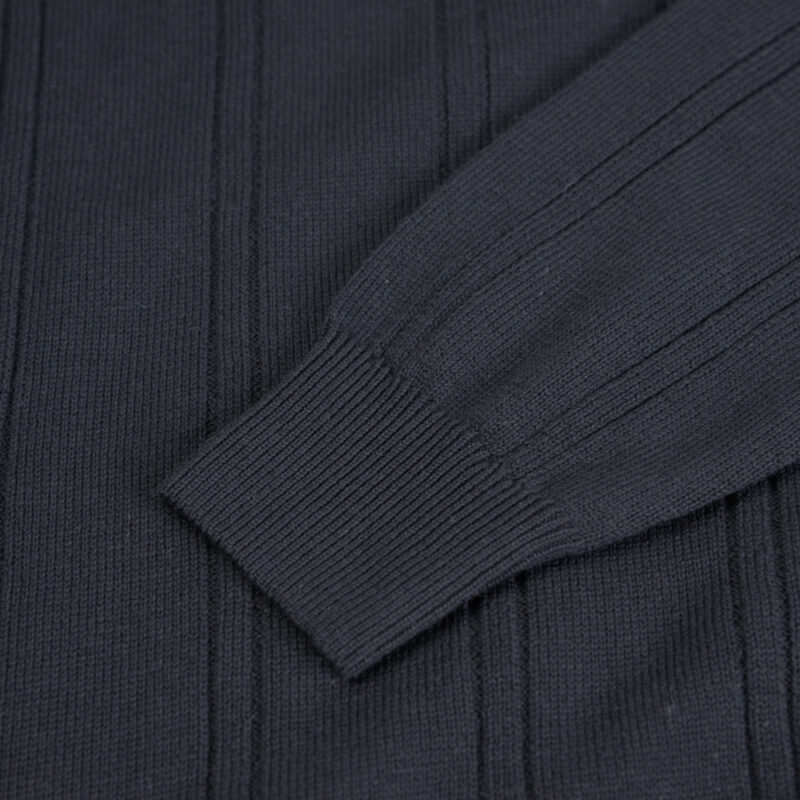 Black Turtleneck Sweater with Cable-Knit in Cotton (Modern Fit)