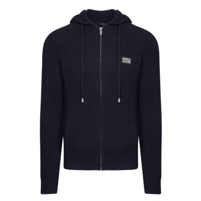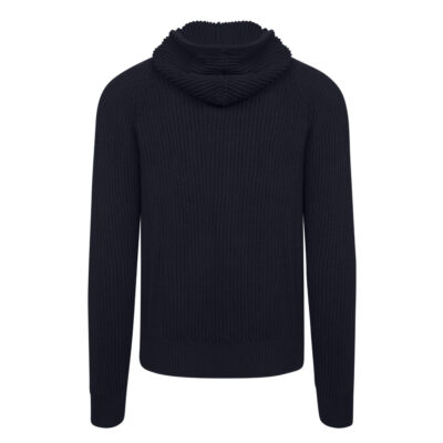 Full Zip Blue Hooded Structured Knit Cardigan (Modern Fit)