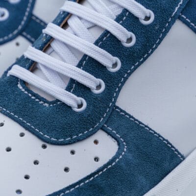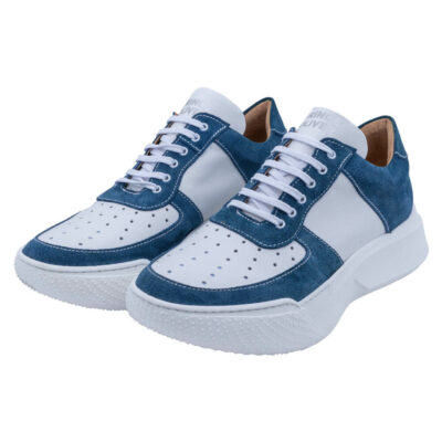Designer White Sneakers with Blue Suede Details