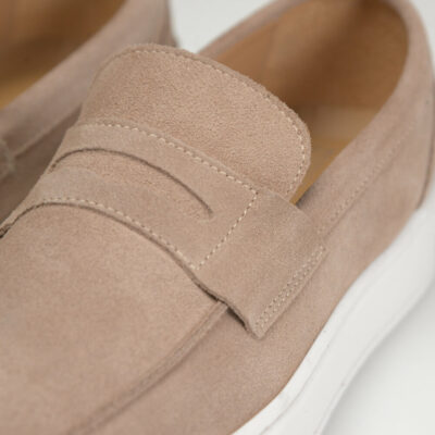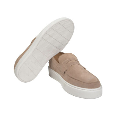 Leather Suede Penny Loafers Beige
