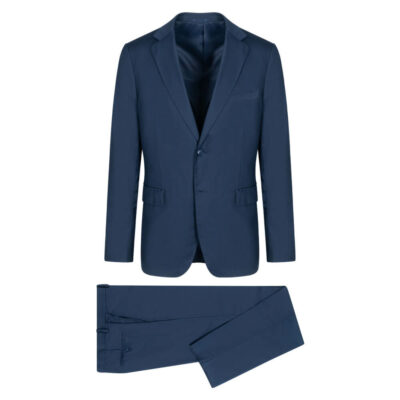 A blue monochrome suit is a must have for office and formal occasions. Pair it with a monochrome or striped shirt, with a plaid tie and an in style handkerchief and complete your image with a pair of leather evening shoes.