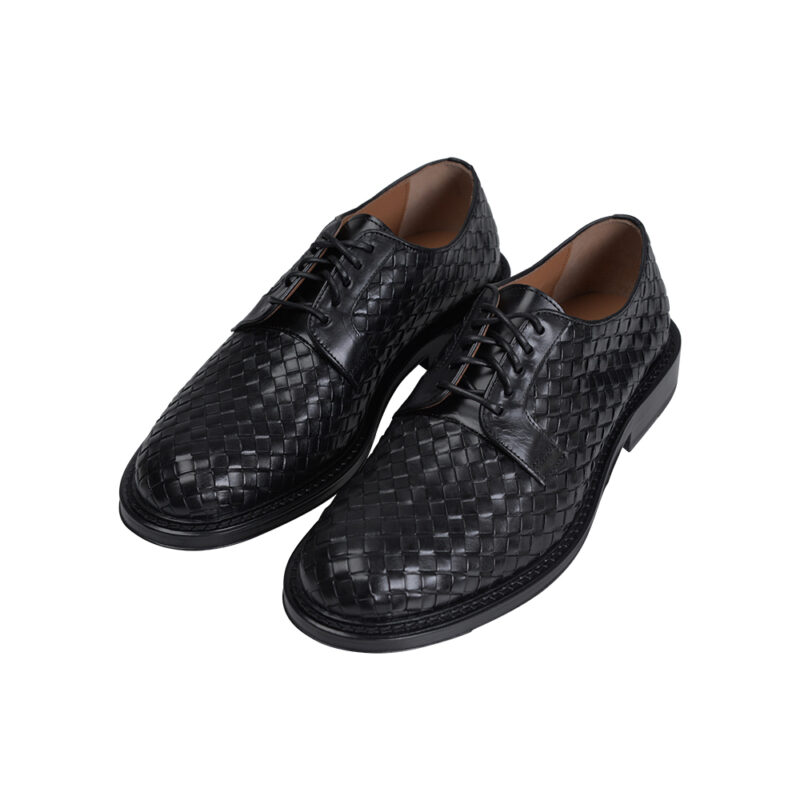 Woven Lace up Leather Derby Black Shoes