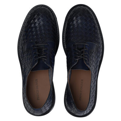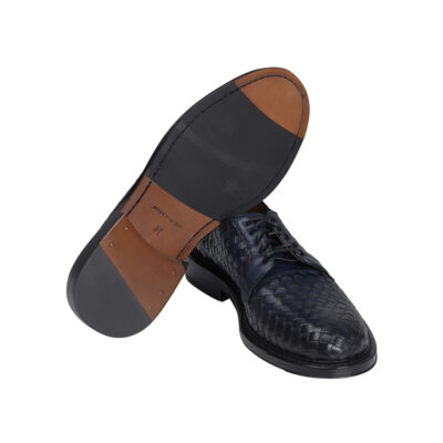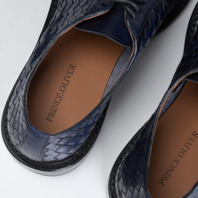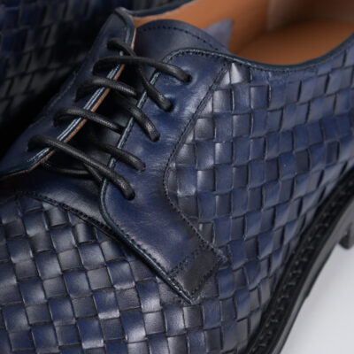 Woven Lace up Leather Derby Dark Blue Shoes