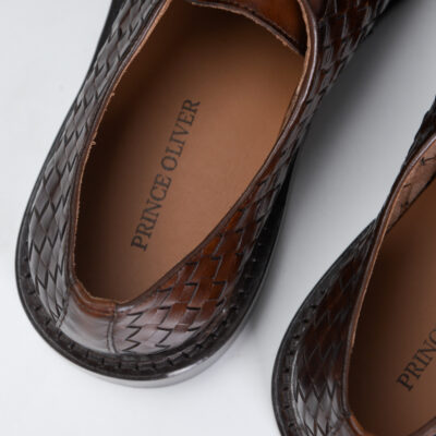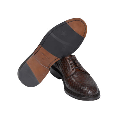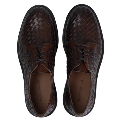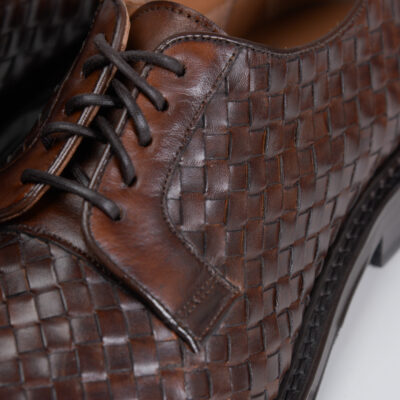 Woven Lace up Leather Derby Brown Shoes