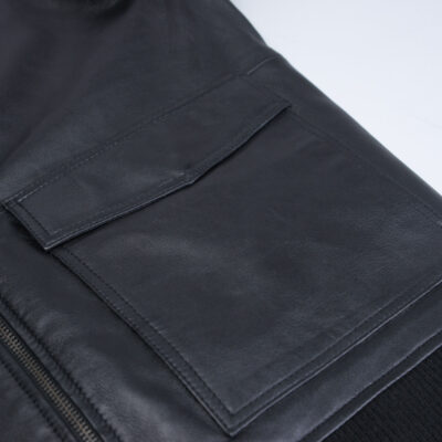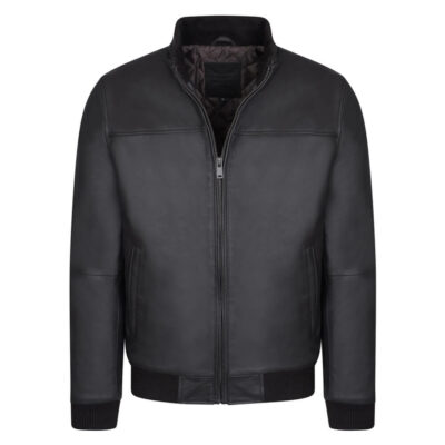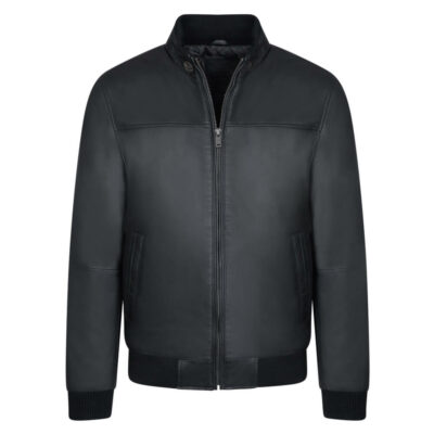 Bomber Jacket Black in Sheep Nappa Leather Modern Fit