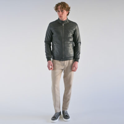 Racer Jacket Γκρι σε Sheep Nappa Leather Modern Fit