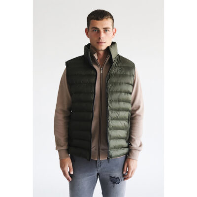 Lightweight Khaki Sleeveless Jacket with Logo Print (Modern Fit)