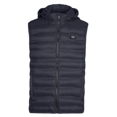 Lightweight Sleeveless Jacket Dark Blue with Logo Patch & Detachable Hood (Modern Fit)
