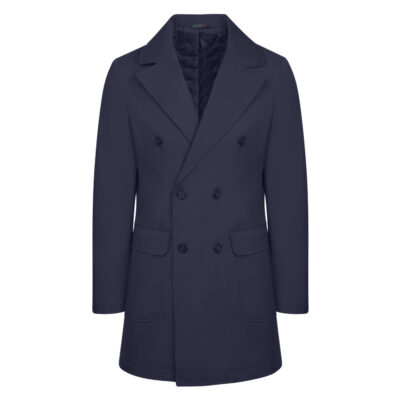 Winter Technical Fabric Trench Coat Dark Blue Modern Fit