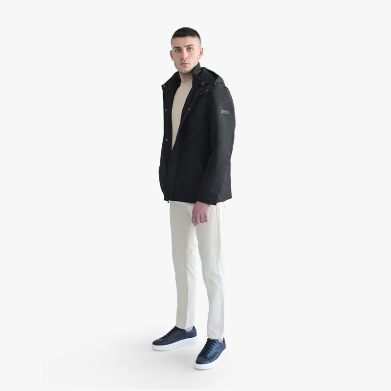 Prince Oliver Lightweight Hooded Jacket Black & Detachable Hood(Modern Fit)