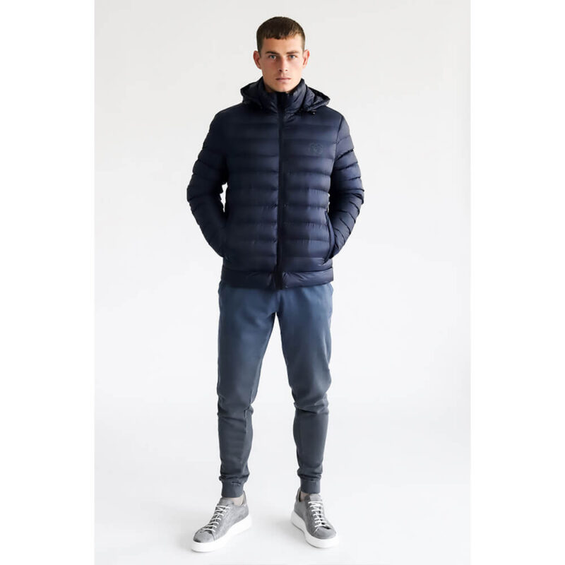 Lightweight Jacket Dark Blue with Logo Print & Detachable Hood (Modern Fit)