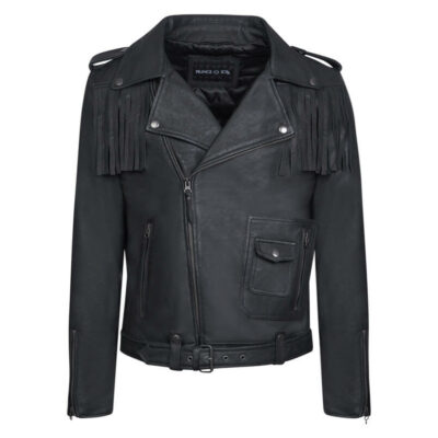 Fashionable Perfecto Jacket Black With Fringes 100% Leather (Modern Fit)