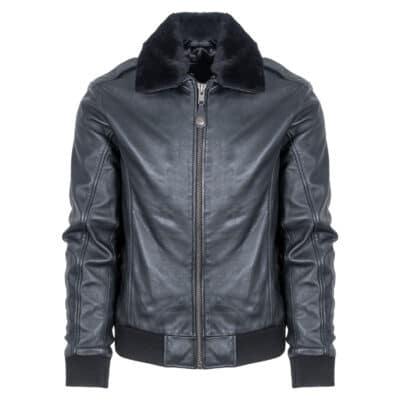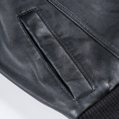 Bomber Jacket Black in Sheep Nappa Leather Modern Fit