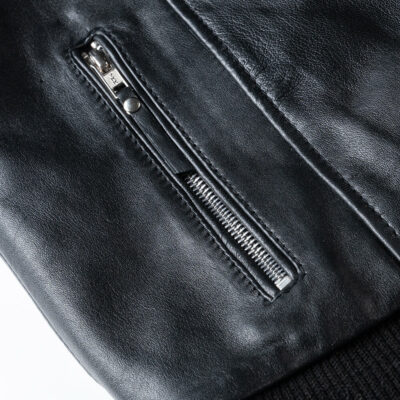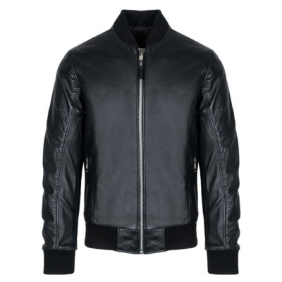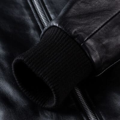 Bomber Jacket Black in Sheep Nappa Leather Modern Fit