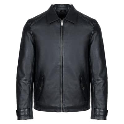 Bomber Jacket Black in Sheep Nappa Leather Modern Fit