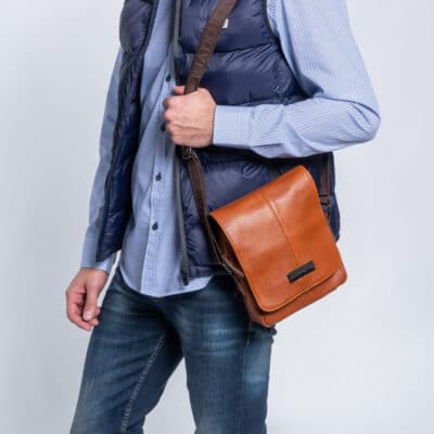 Prince Oliver Men’s Light Brown Leather Messenger Bag “Original Leather”