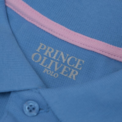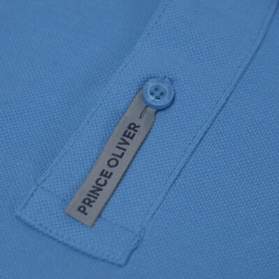 Two Tone Mao Polo Double Pique Blue in Cotton Regular Fit