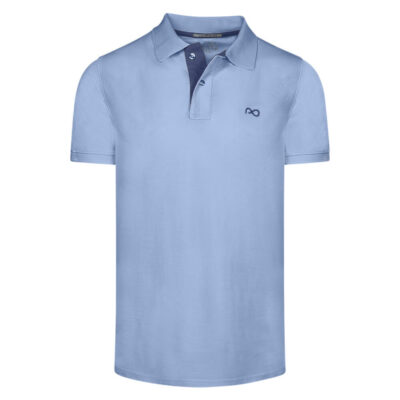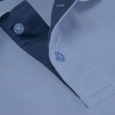Two Tone Mao Polo Double Pique Blue in Cotton Regular Fit