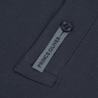 Two Tone Mao Polo Double Pique Black in Cotton Regular Fit