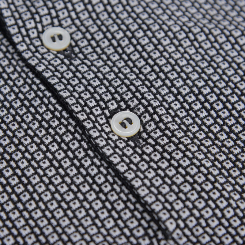Two Tone Mao Polo Double Pique Black in Cotton Regular Fit