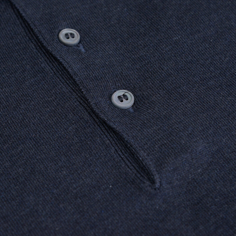 Two Tone Mao Polo Double Pique Dark Blue in Cotton Regular Fit