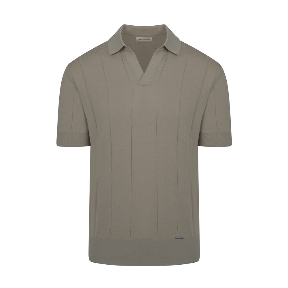 Polo that stands out for its embossed vertical weave, which gives depth to the color and a unique sense of luxury. The Johnny Collar design (open collar without buttons) gives an unpretentious elegance, ideal for contemporary layering.