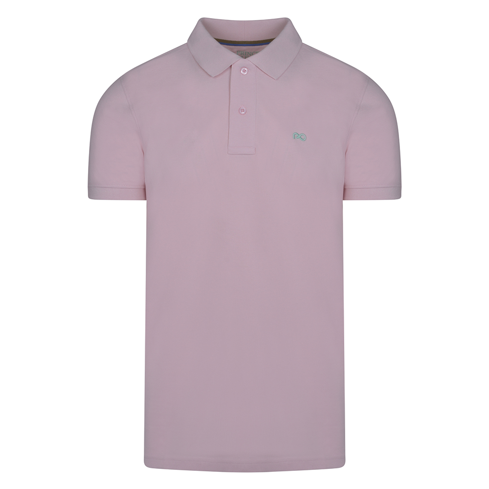Polo Double Pique with 3D Knit Logo & Print Collar Powder Pink in Cotton