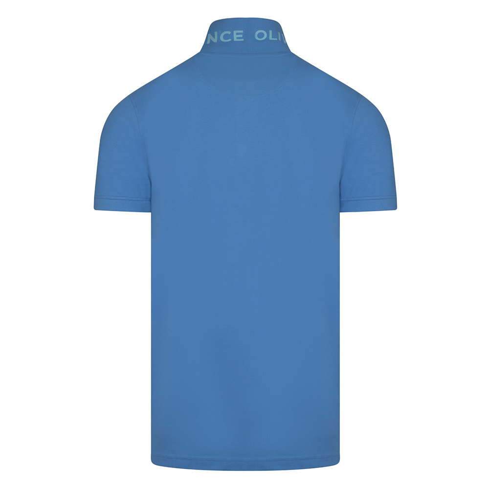 Polo Double Pique with 3D Knit Logo & Print Collar Blue Ruff in Cotton