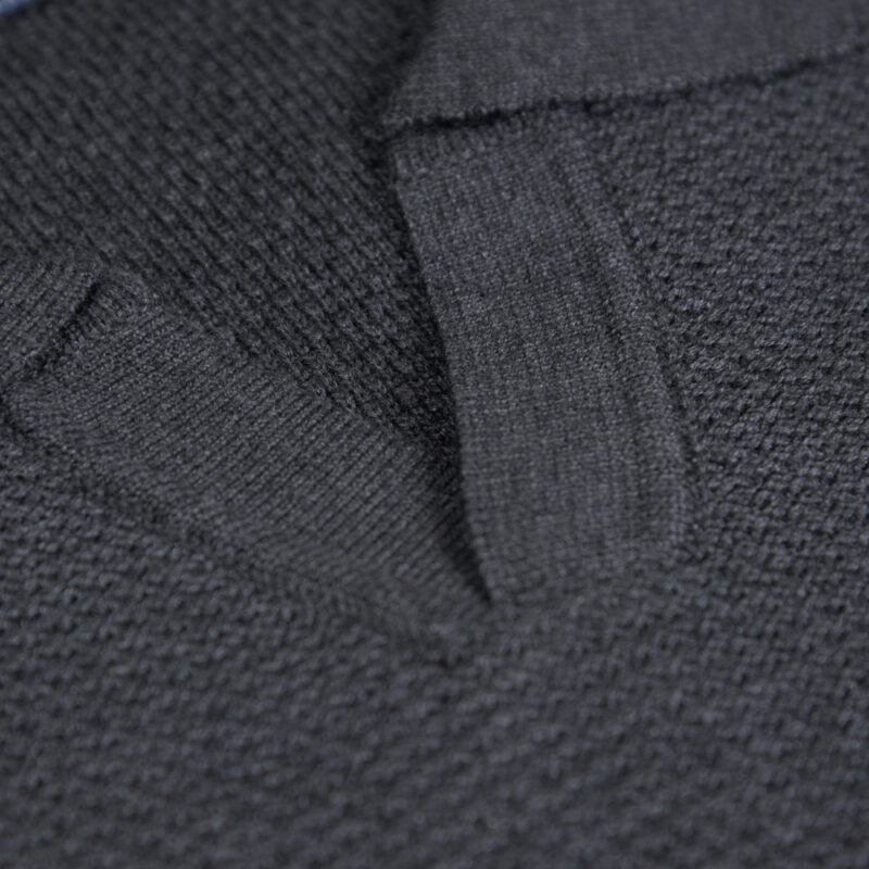 Two Tone Mao Polo Double Pique Black in Cotton Regular Fit