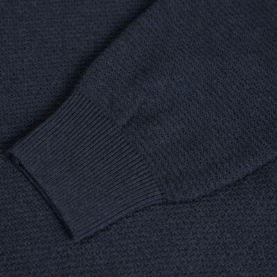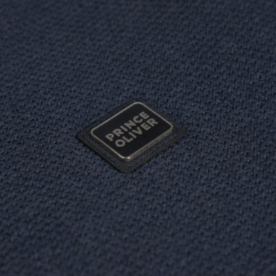Two Tone Mao Polo Double Pique Dark Blue in Cotton Regular Fit