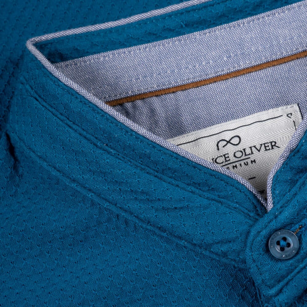 Two Tone Mao Polo Double Pique Blue in Cotton Regular Fit